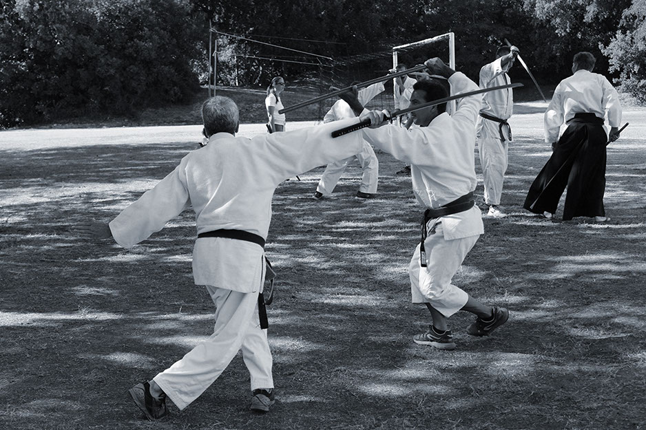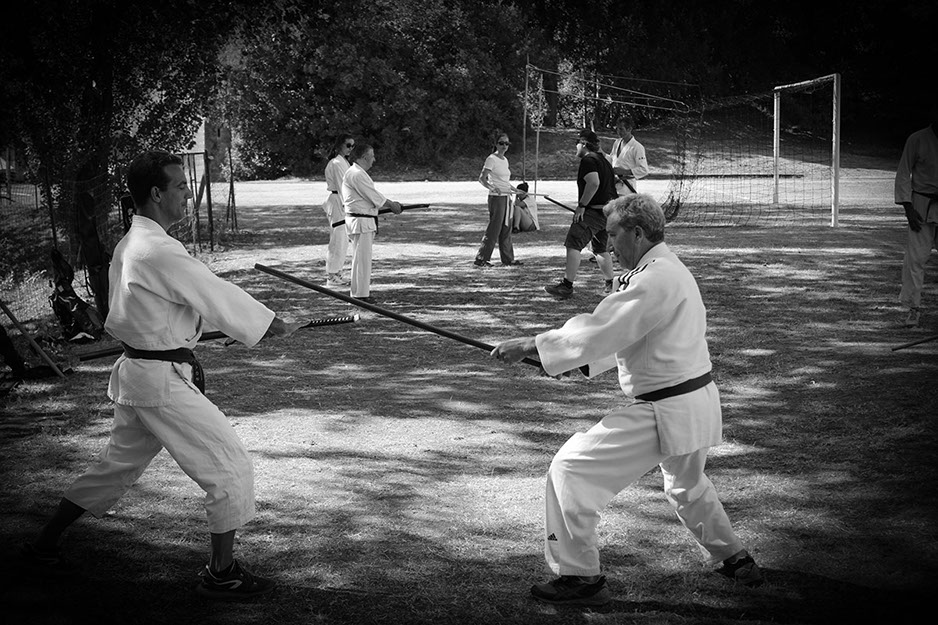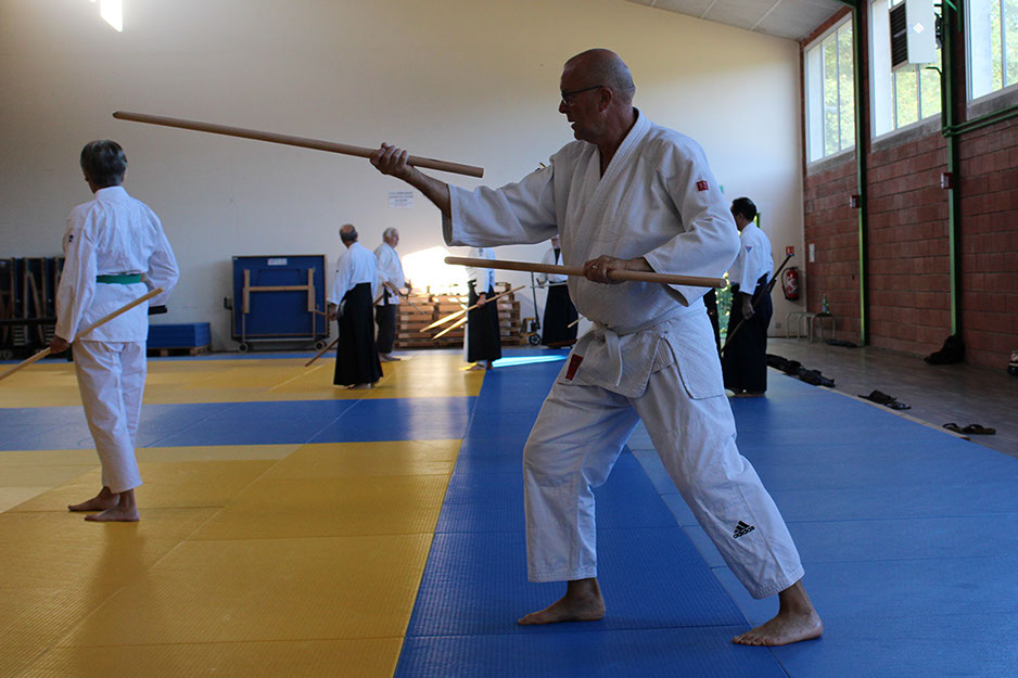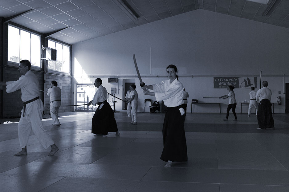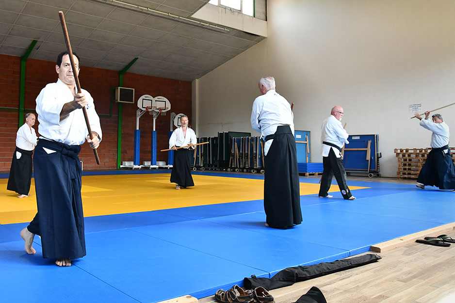 Nous n'avons su que très tard que le stage d'été serait maintenu. Finalement, le centre sportif de Boyardville a ouvert ses portes avec les consignes sanitaires d'usage et une restriction de chambres allouées. Nous étions donc moins nombreux que les autres années et pour respecter la distance sociale, nous avons dû travailler en deux groupes, l'un dans le dojo et l'autre en extérieur en alternance. Enfin, pour éviter tout contact, nous avons pratiqué exclusivement les armes (jo, boken et katana), ce qui n'a pas empêché la diversité puisque puisque Maître Brun nous a légué une pratique aux armes particulièrement développée et riche, cela dès les premiers kyu.